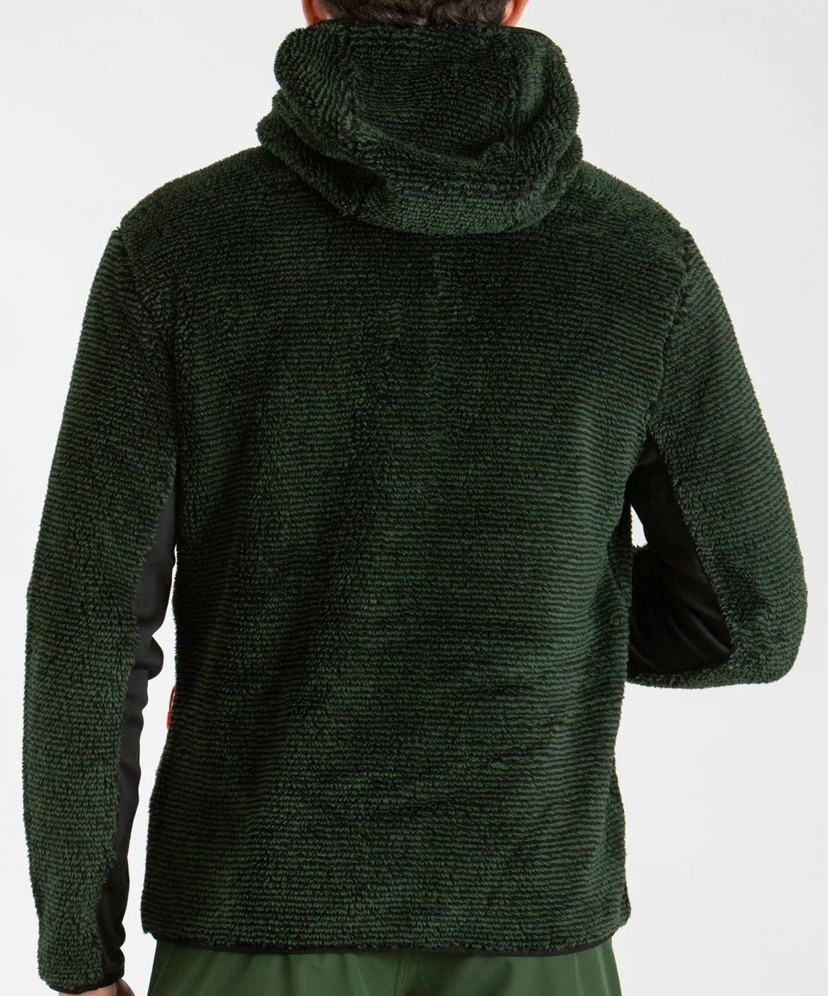 Pile uomo c/ cappuccio in termo fleece, con bande laterali in tessuto traspirante elasticizzato. Pile tipo "ORSETTO" molto caldo, ideale per tutti gli sport all'aria aperta invernali, ma anche per il quotidiano. Cerniera apribile, due tasche con zip, polsi-cappuccio-fondogiacca rifiniti con bordino elasticizzato.