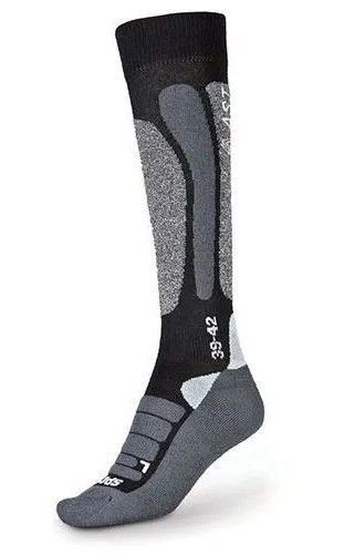 Paio calze da sci in confortevole filato cool dry che permette un'ottima traspirazione del vapore acqueo mantenendo cosi' il piede asciutto. hanno linea ergonomica, studiata appositamente per attutire l'impatto con lo scarpone da sci. omposizione : Poliestere mist Categoria tessile : Knitted wear