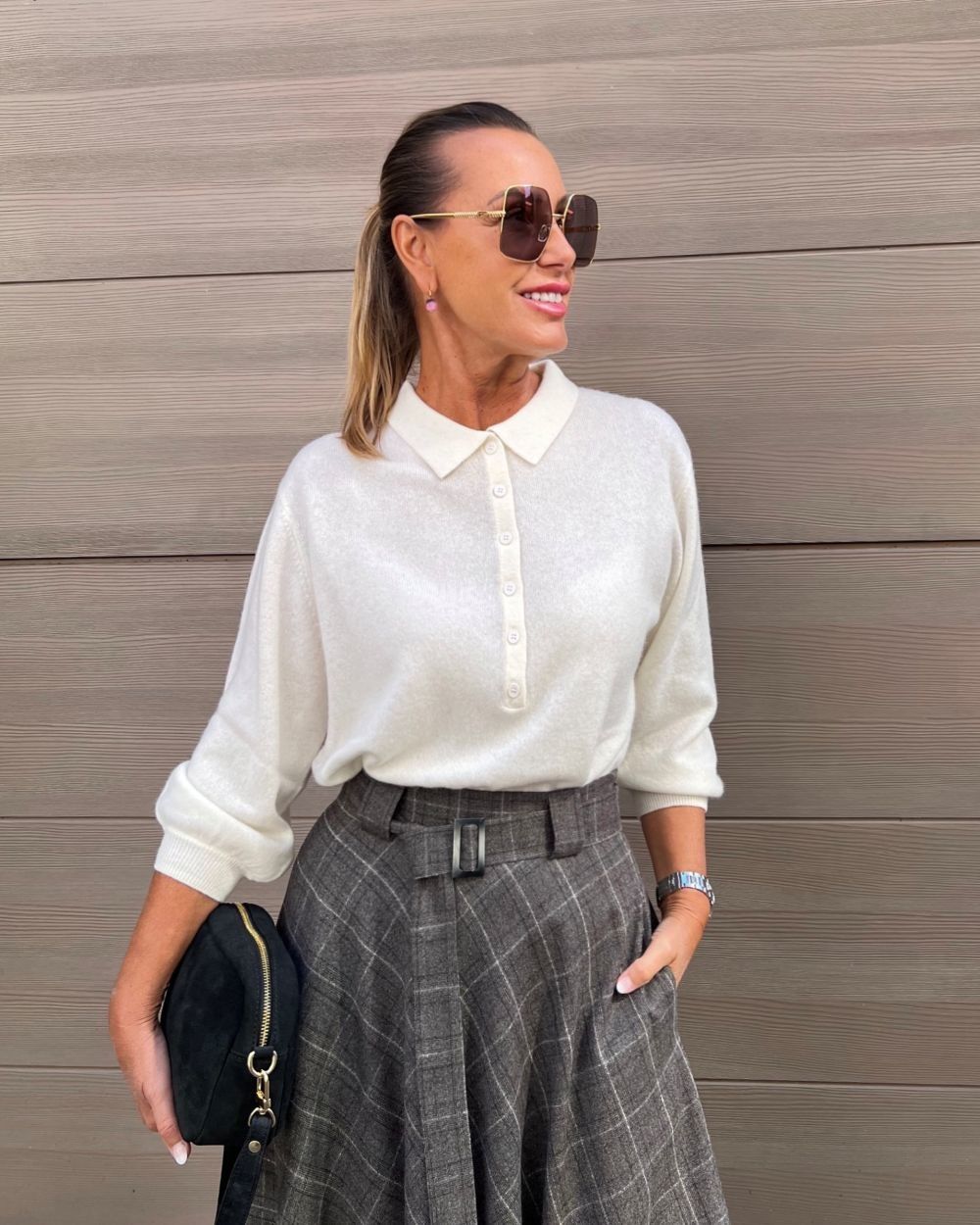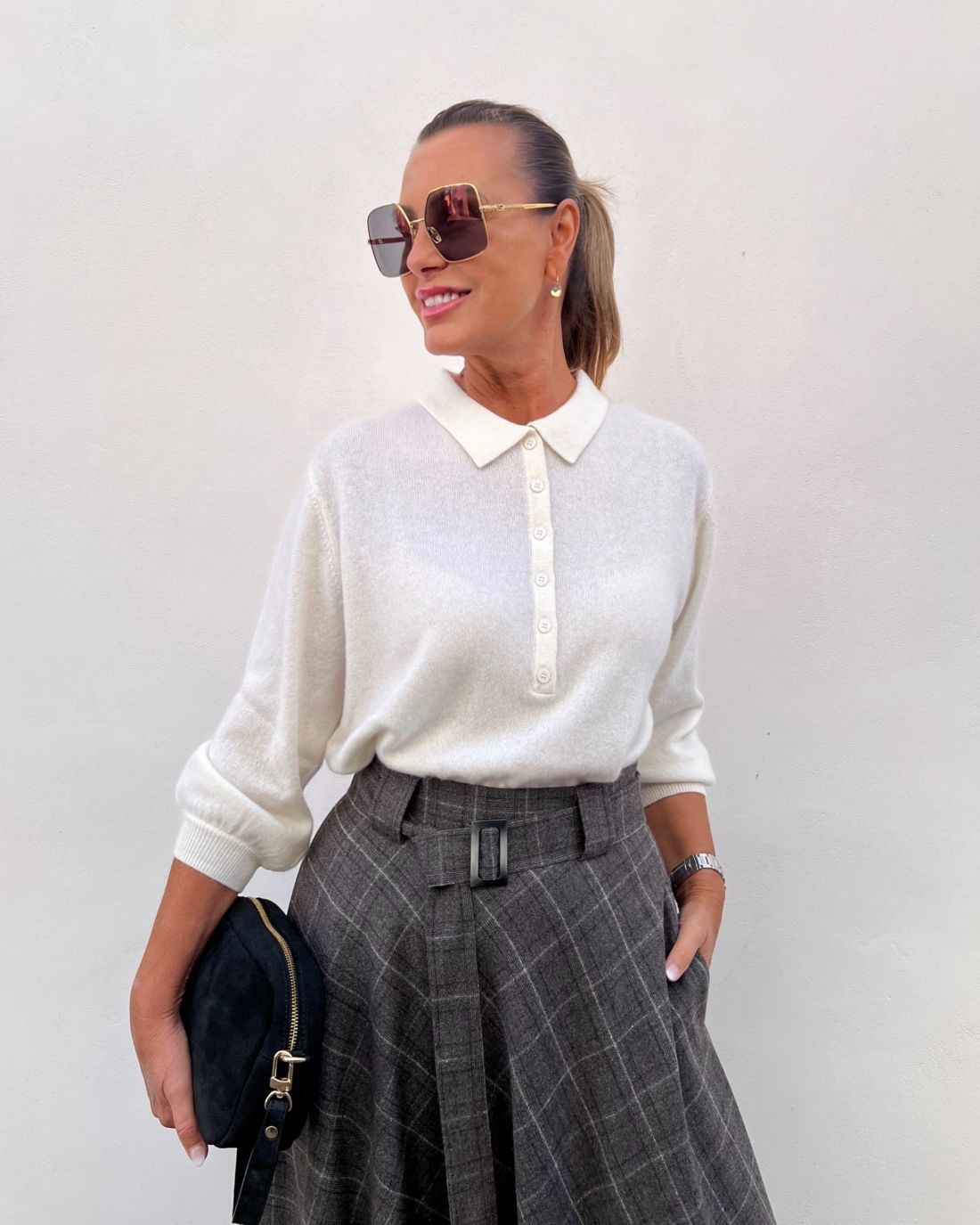 Maglia Polo Panna SOLO CASCMIR 100% cashmere, manica 3/4