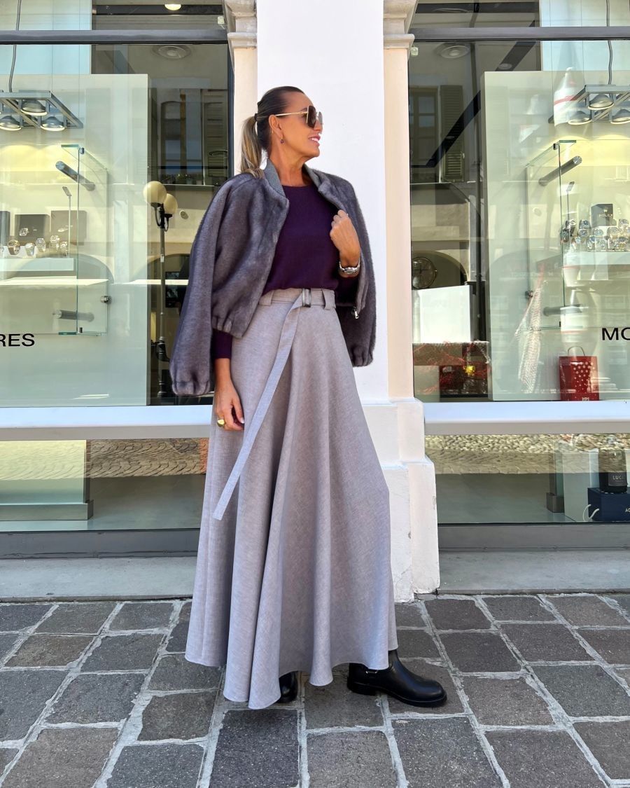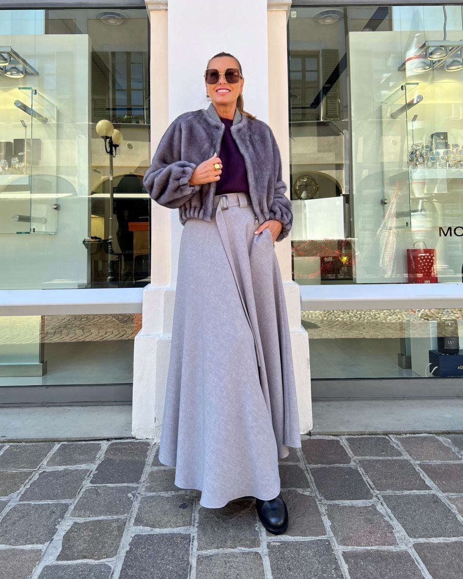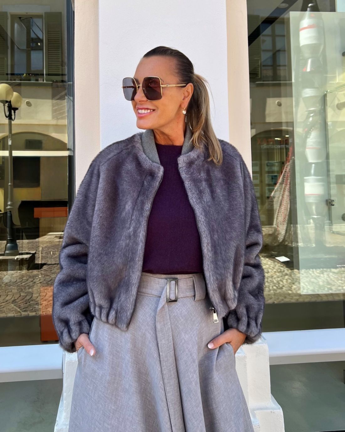 Bomberino Eco-Mink Grigio Sapphire VALENTINI, collo in tessuto