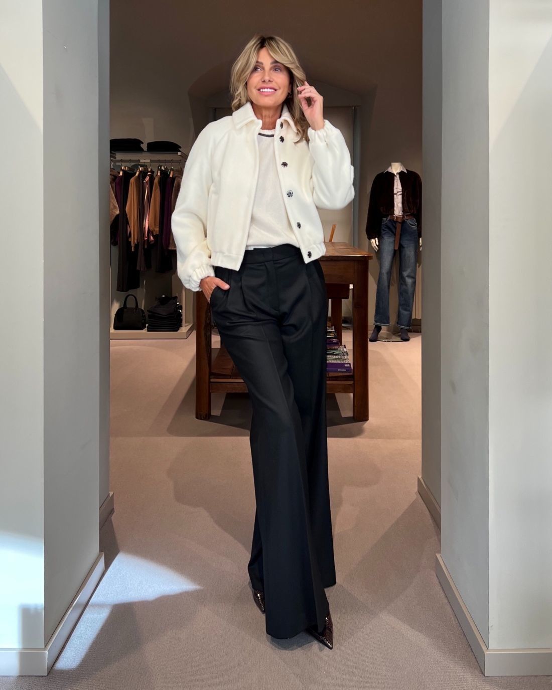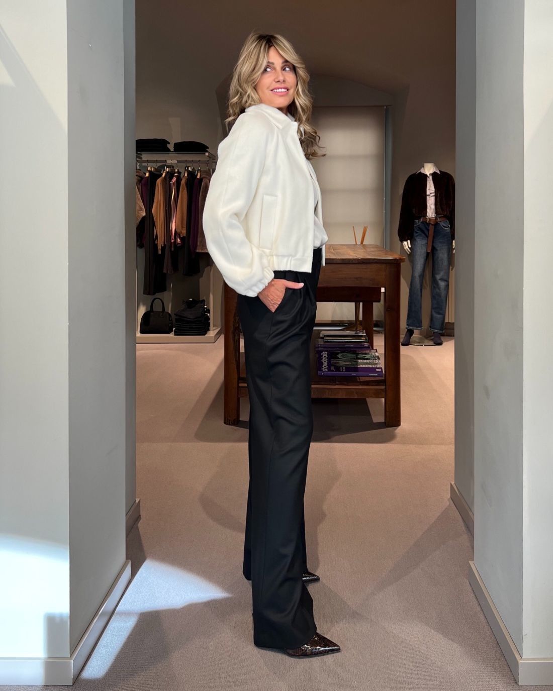 Bomber Kim Panna NG71, 100% lana, abbottonatur nascosta, elastico sotto e ai polsi, con colletto