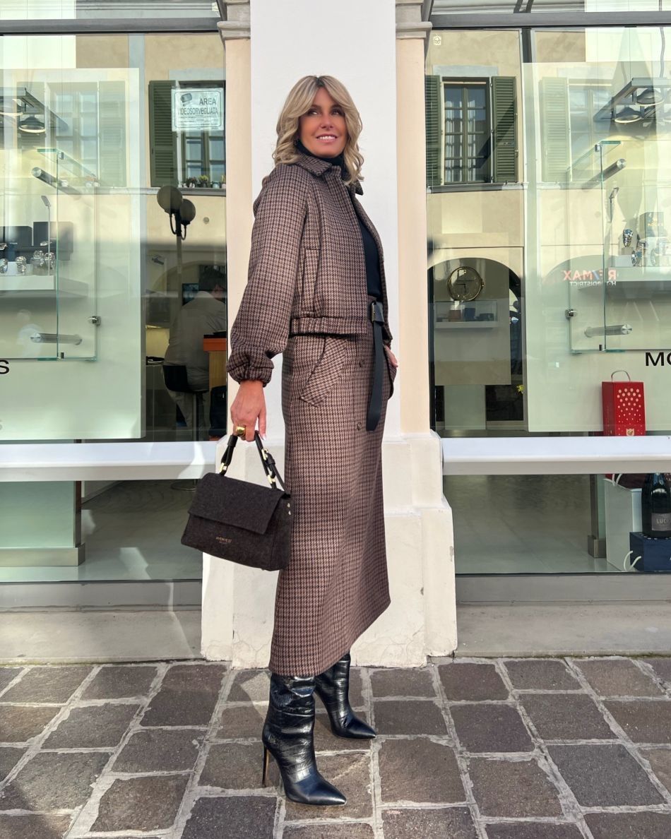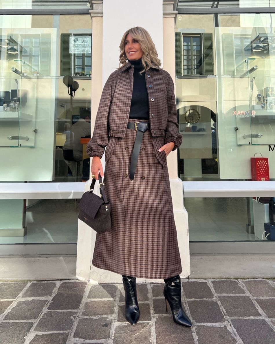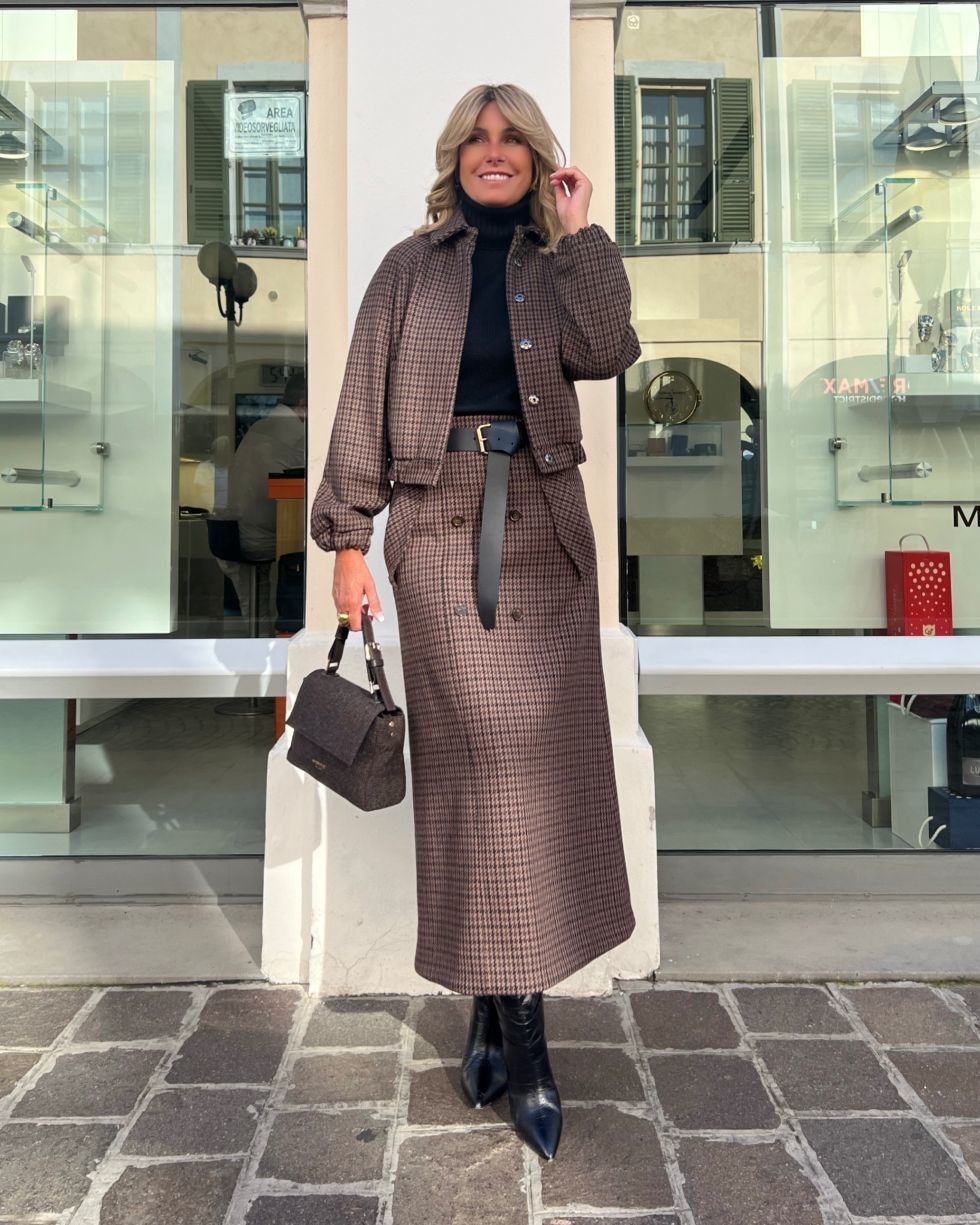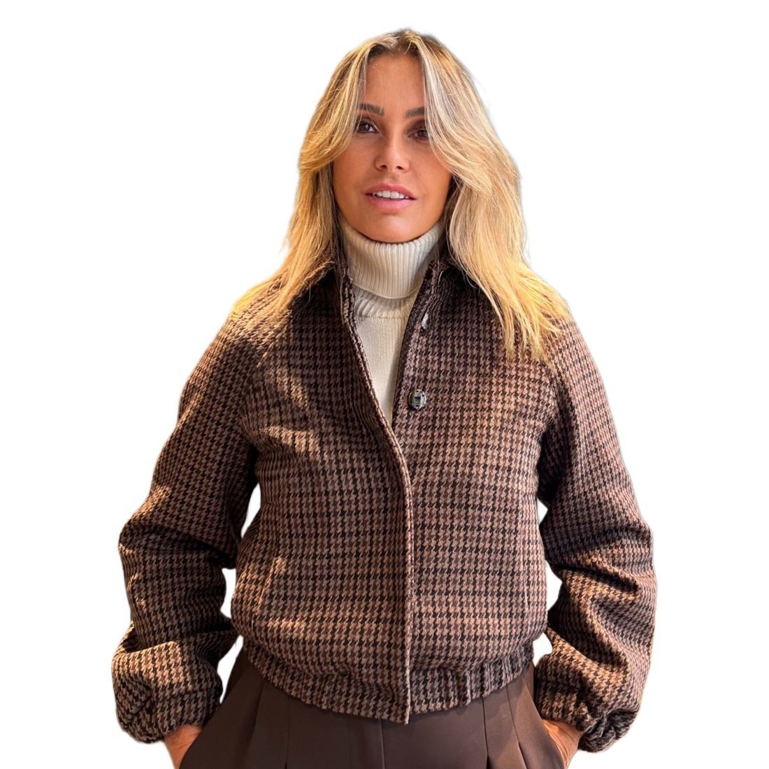 Bomber Kim Fantasia NG71, 100% lana, abbottonatur nascosta, elastico sotto e ai polsi, con colletto (vedi Gonna Mery nella stessa fantasia per fare il completo)