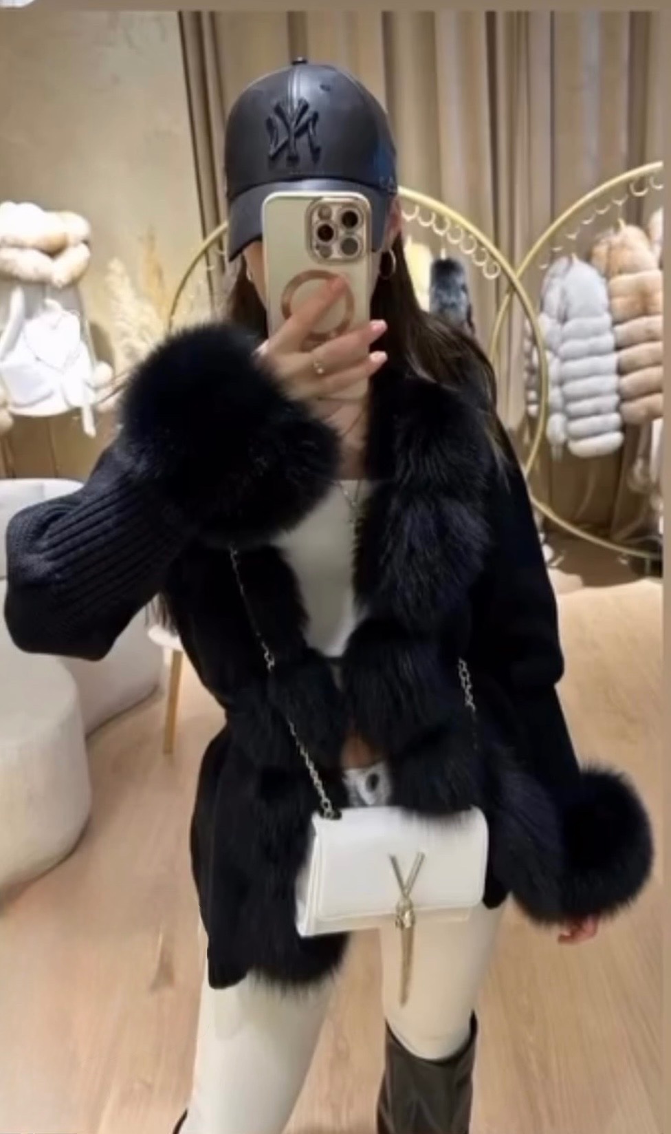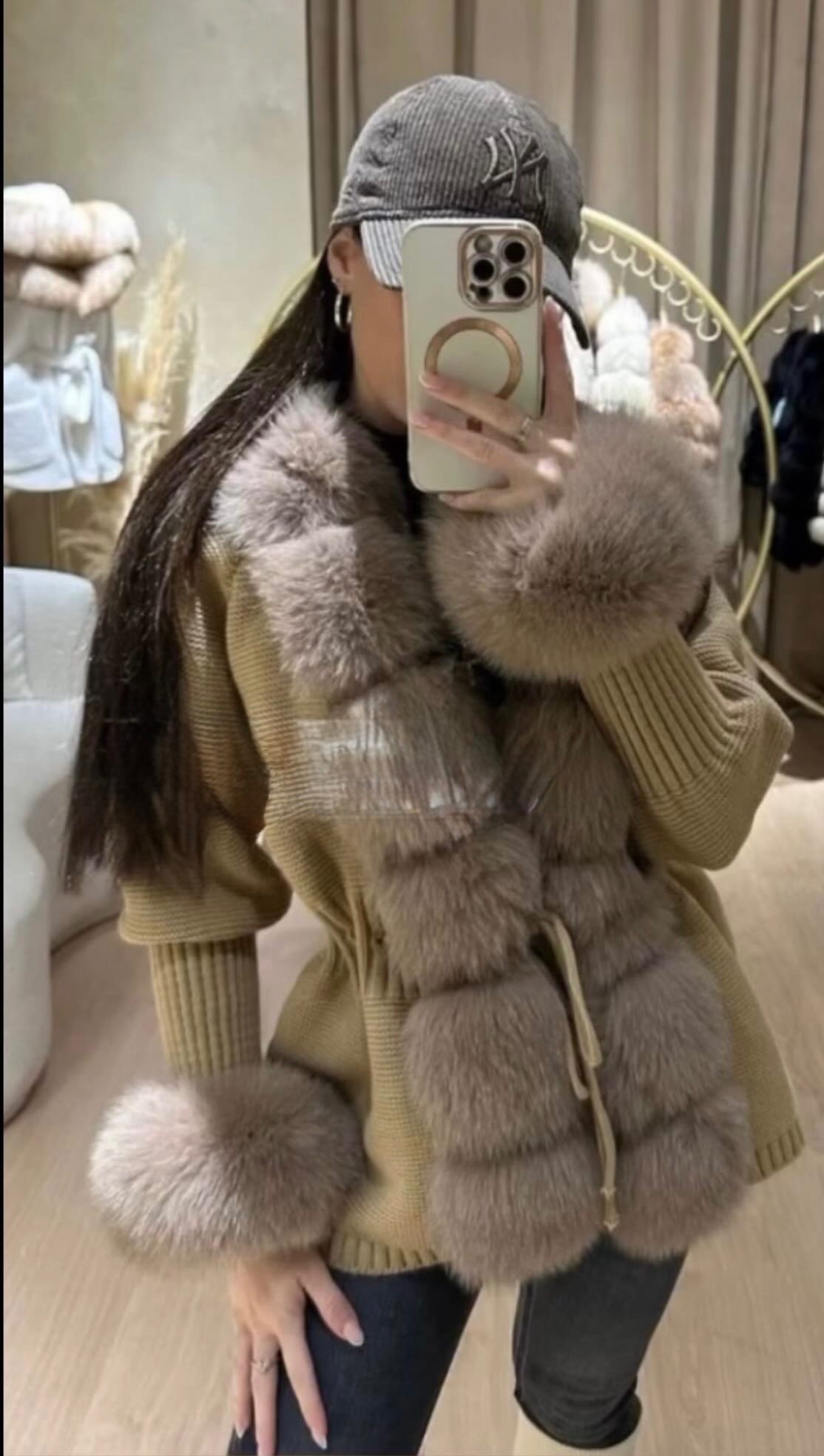 Cardigan con collo in volpe disponibile in diverse colorazioni taglia unica