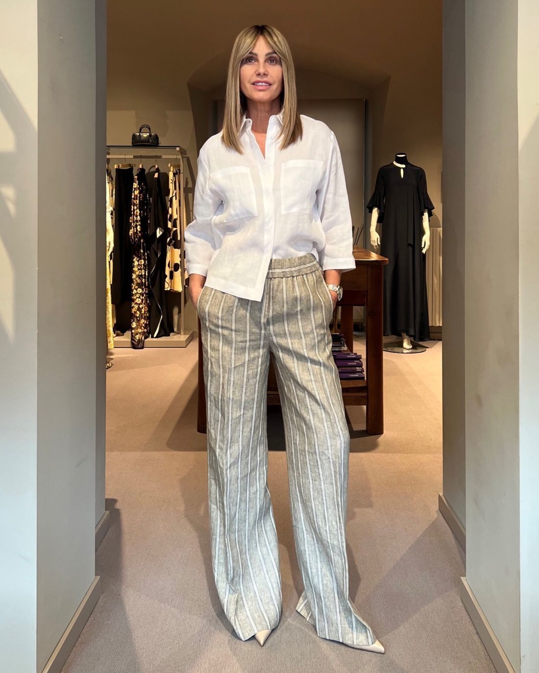 Camicia Tasche Panna in Lino PESERICO