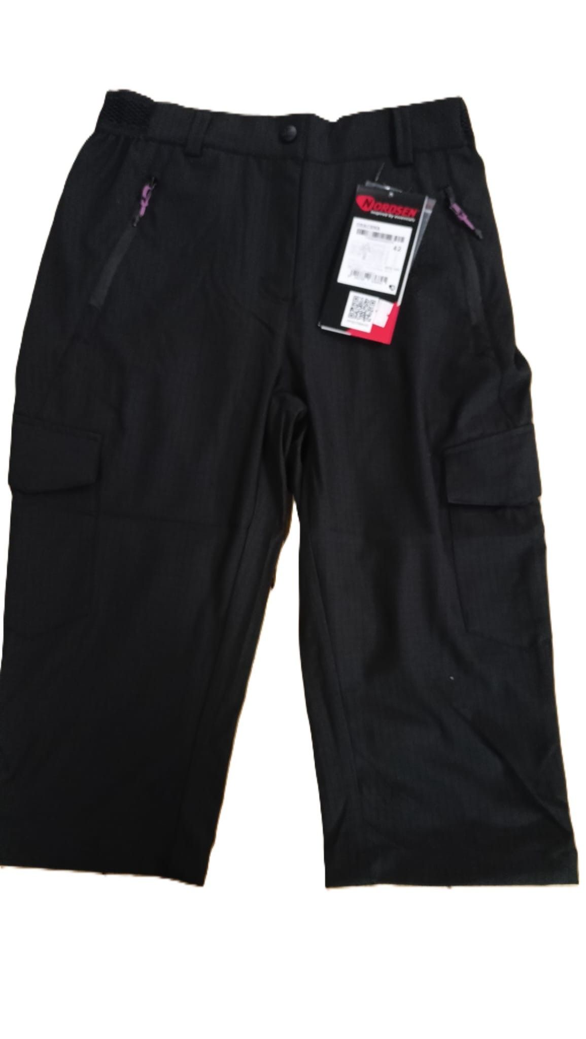 Pantaloni capri realizzati in tessuto monoelastico ripstop, traspirante, che favorisce l' espulsione dell'umidita' verso l' esterno. comprende una comoda apertura tramite cerniera e bottone, tasche davanti con zip e fodera in rete, tasche laterali applicate con pattina e bottone per la chiusura, cintura con elastico, e regolazione al fondo tramite velcro. il tessuto elasticizzato assicura massimo comfort e liberta' di movimento, ideale per camminate e sport all'aria aperta. lunghezza interno gamba circa cm 41 taglia 42.
