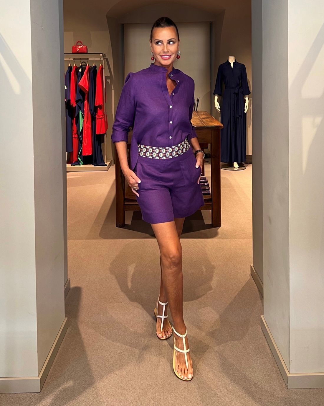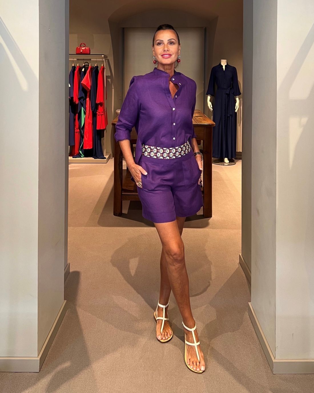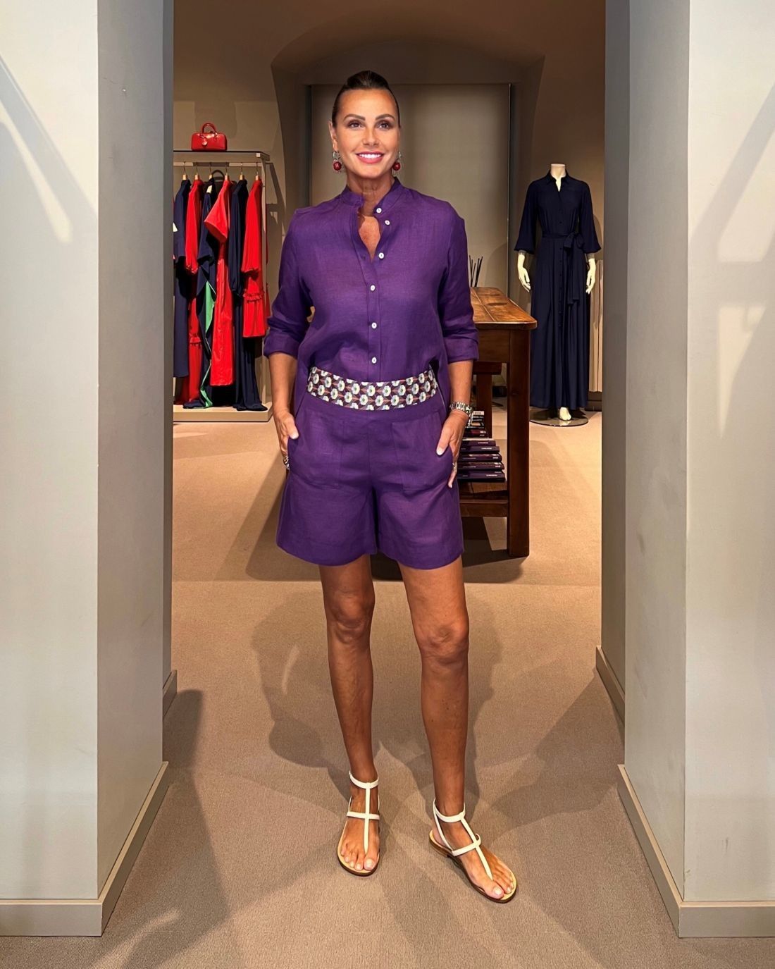 Completo Shorts Lino Viola NG71