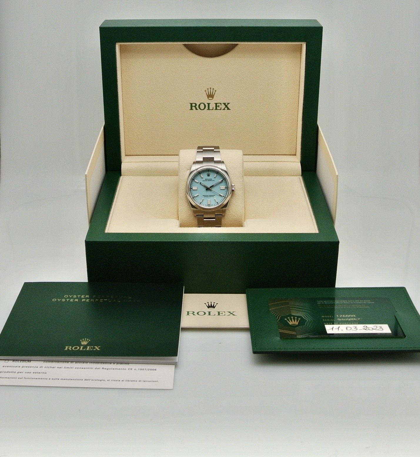 ROLEX OYSTER ref 126000 TIFFANY DIAL, orologio nuovo,scatola corredo e garanzia originale da concessionario italiano 2023