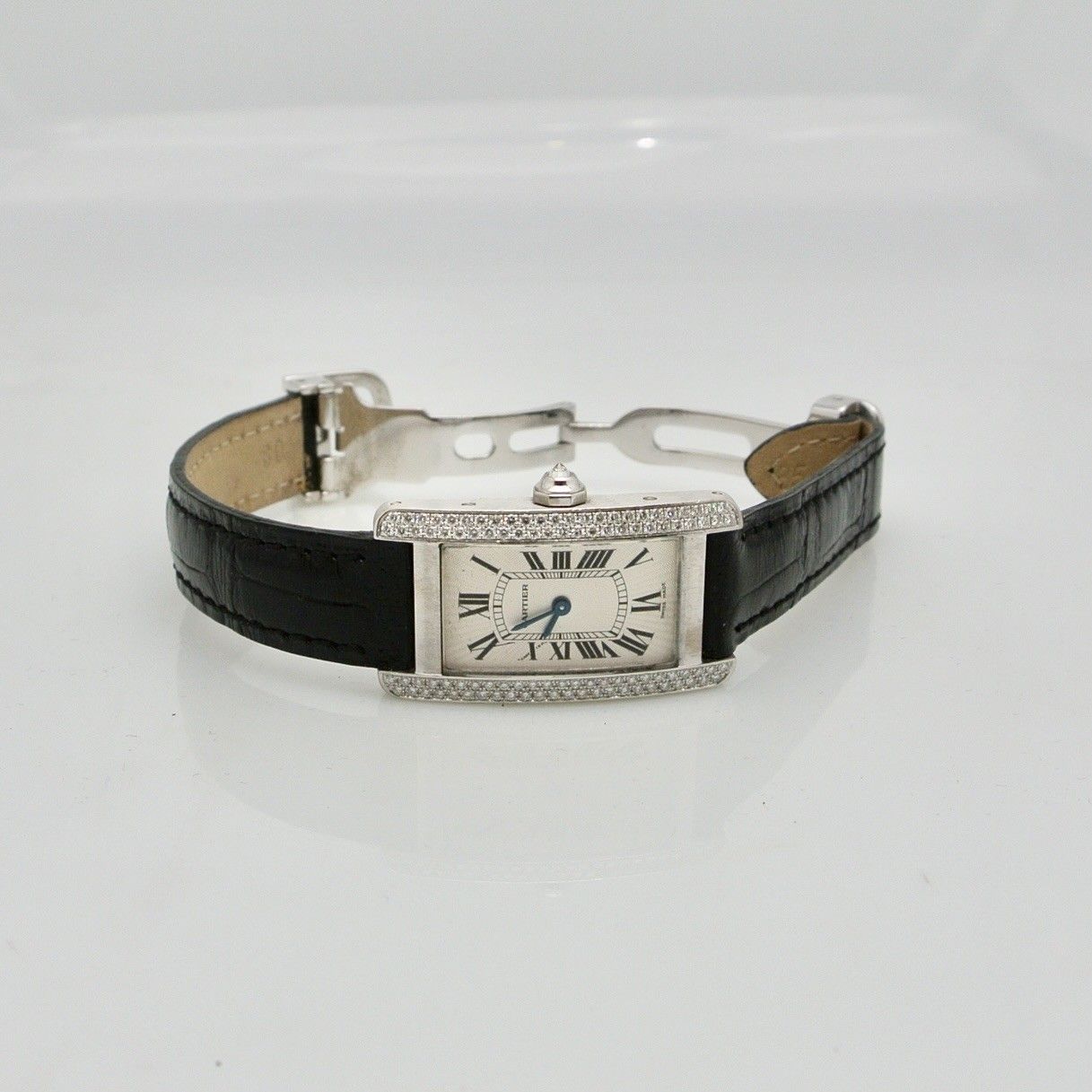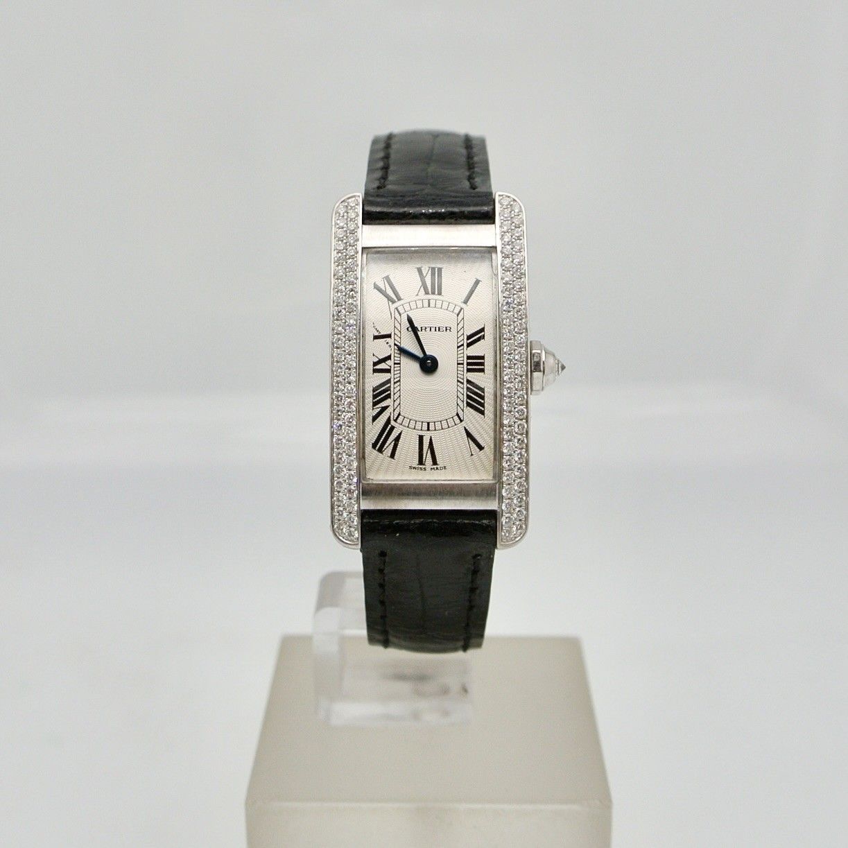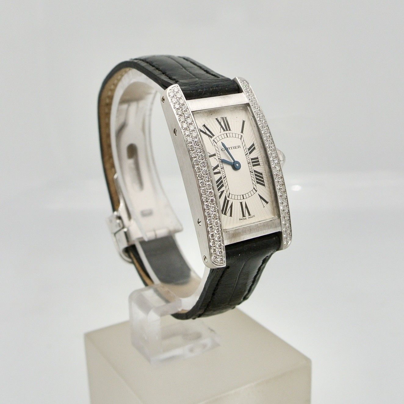 CARTIER TANK AMERICANE referenza 1713,orologio in ottime condizioni generali,cassa PM e fibbia in oro bianco con diamanti factory,movimento al quarzo,1 anno garanzia MONTRES