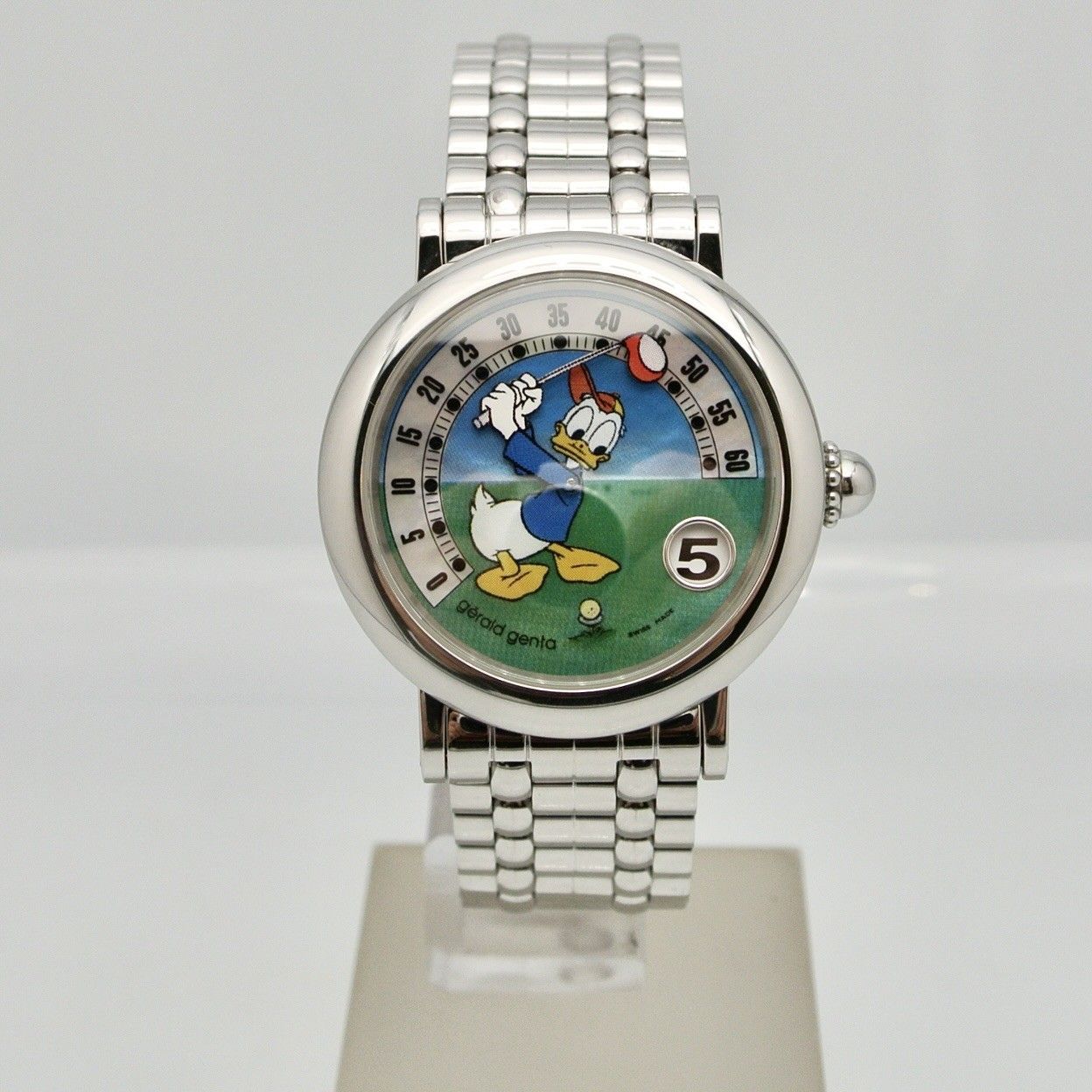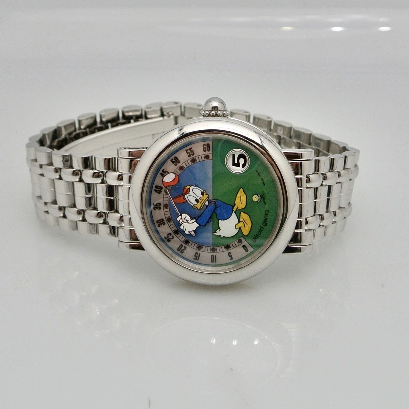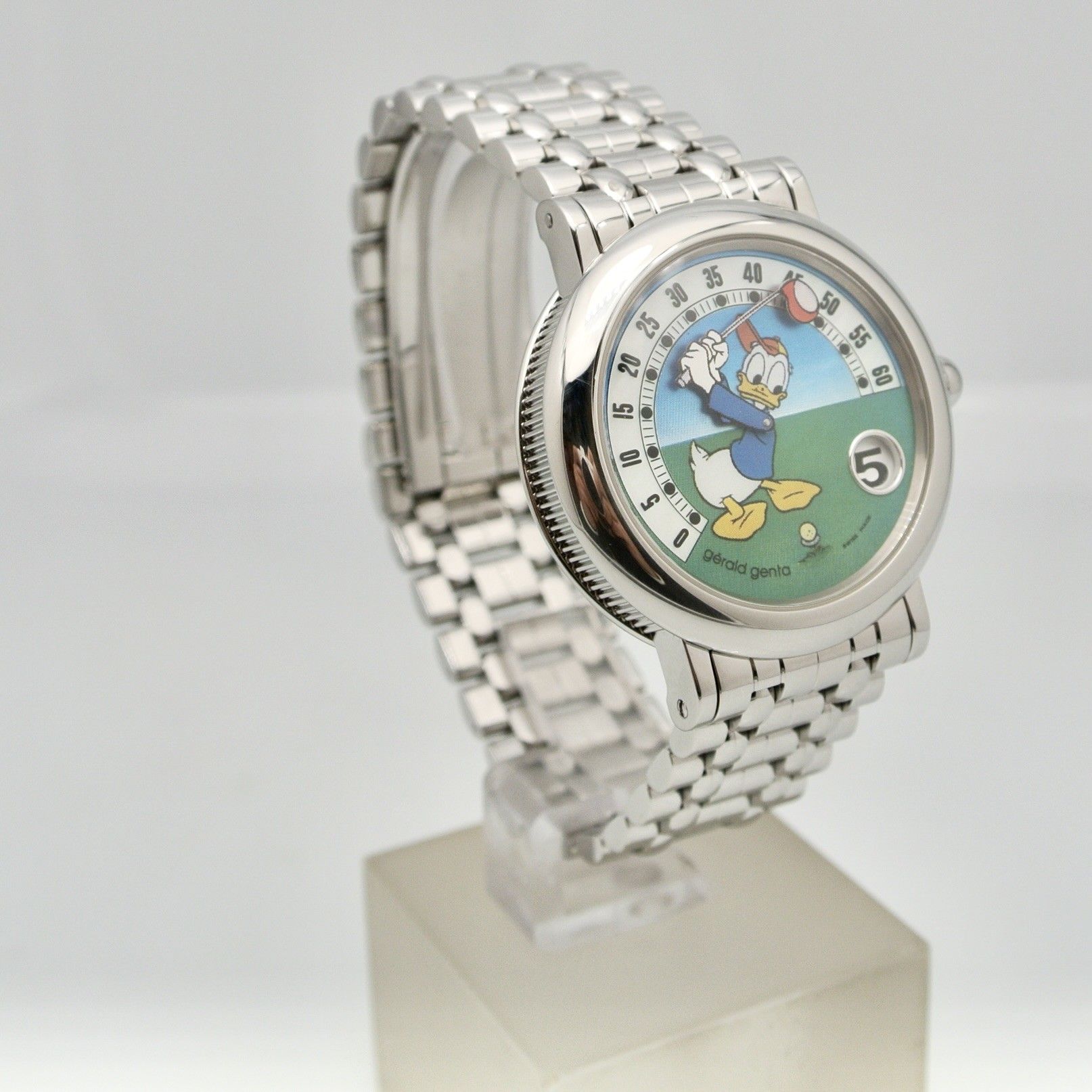 GERALD GENTA RETRO DONALD DUCK GOLF,orologio in eccellenti anno 1999,condizioni generali ,cassa e bracciale in acciaio ,scatola e garanzia in bianco ,revisione effetuata 2/26,1 anno garanzia Montres