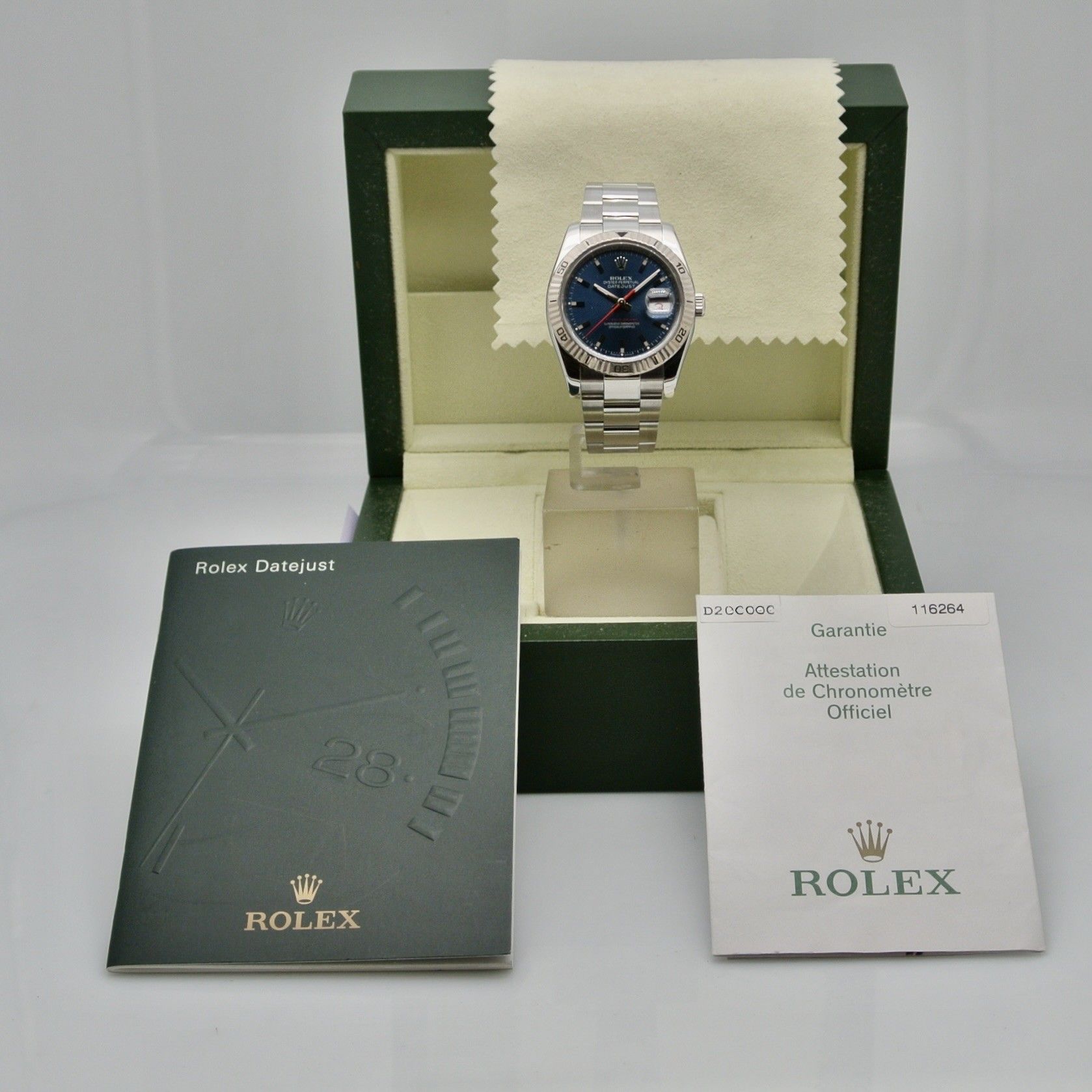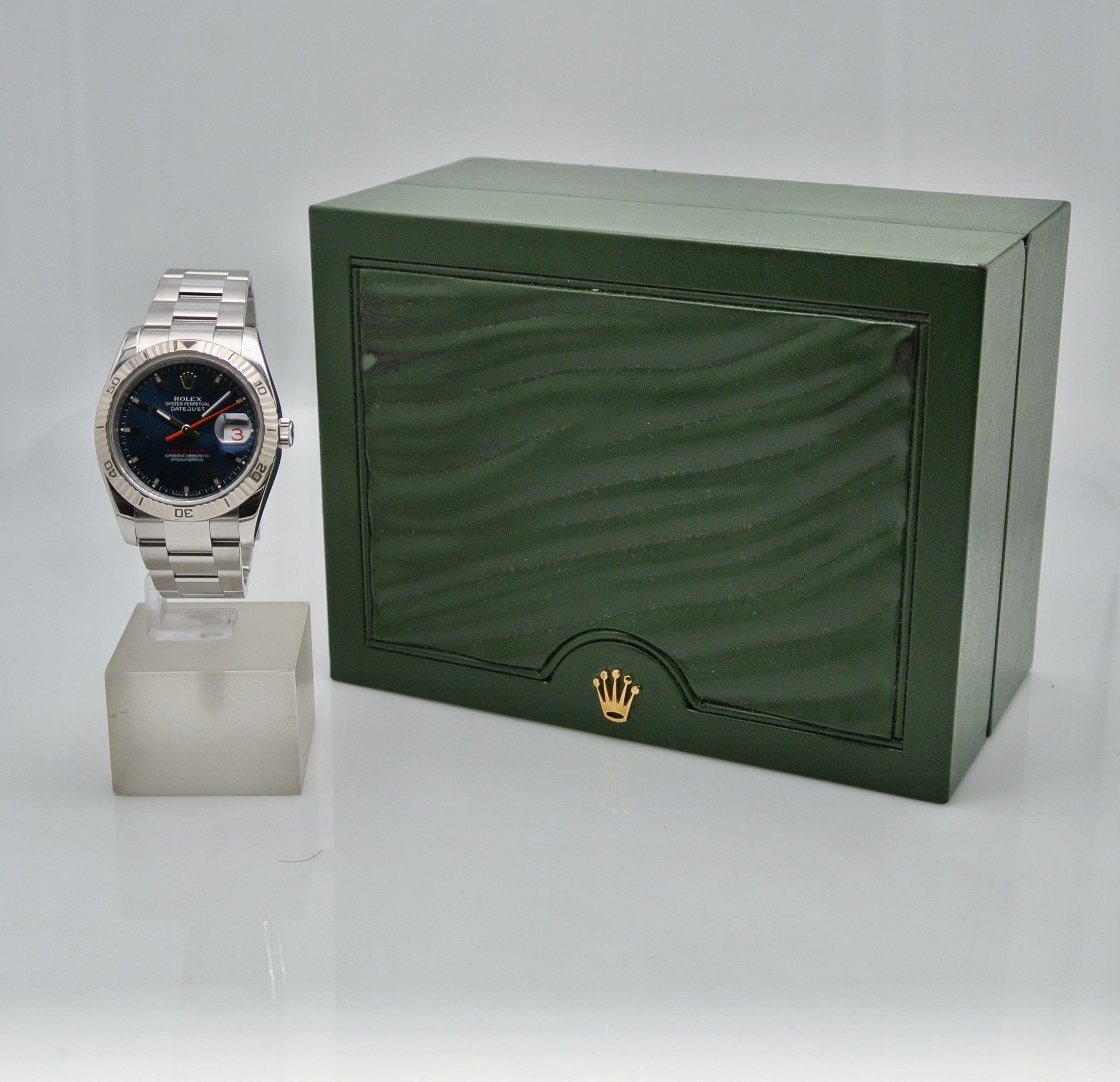 ROLEX DATEJUST TURNOGRAPH 36 mm,ref 116264,ghiera girevole in oro bianco,cassa e bracciale in acciaio ,quadrante blu ,condizioni ottime ,totale assenza di graffi o segni su cassa bracciale e vetro,scatola e garanzia originale anno 2009,1 anno garanzia MONTRES