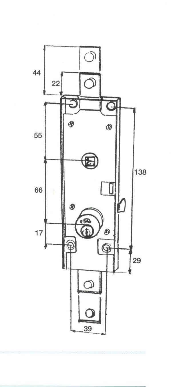 Serratura FASEM 124 per basculante a 2 CHIUSURE con leva interna cilindro tondo d. 25 x 15