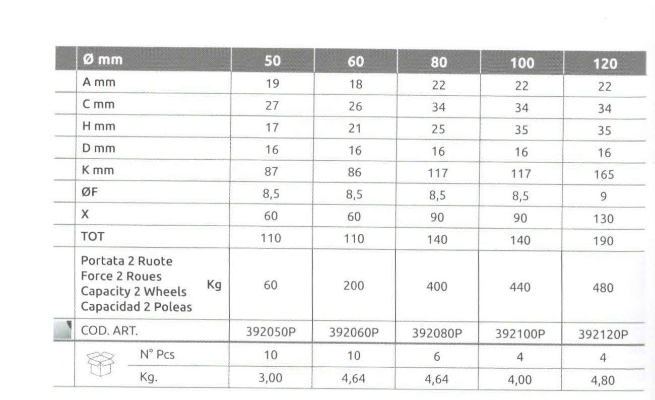 N.B. Per avere la certezza della disponibilità del materiale vogliate contattarci al 3289424053 oppure 0457100066 prima di concludere l'ordine. Grazie. Codice articolo F827 In acciaio zincato 1 Cuscinetto a sfera Spessore ruota mm 22 Spessore con supporto mm 34 Diametro interno gola mm 16 Portata per ruota Kg 240