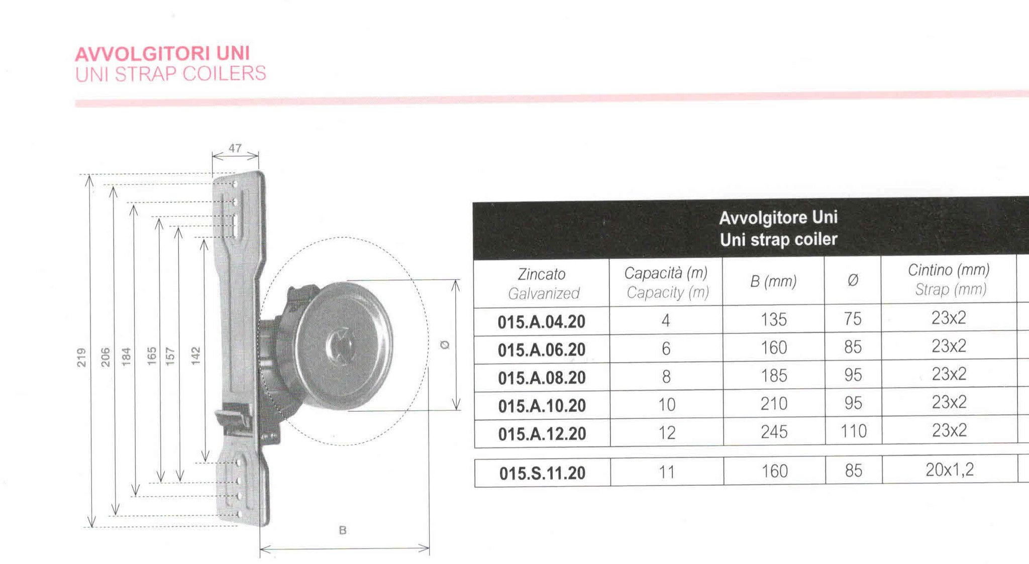 Avvolgitore mod. UNI mt 12 per tapparelle da interno interasse fori 145-165-185-206