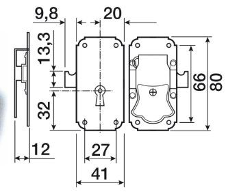 Serratura per mobili in stile da applicare art 5012/20 BRUNITA foro chiave tipo medio
