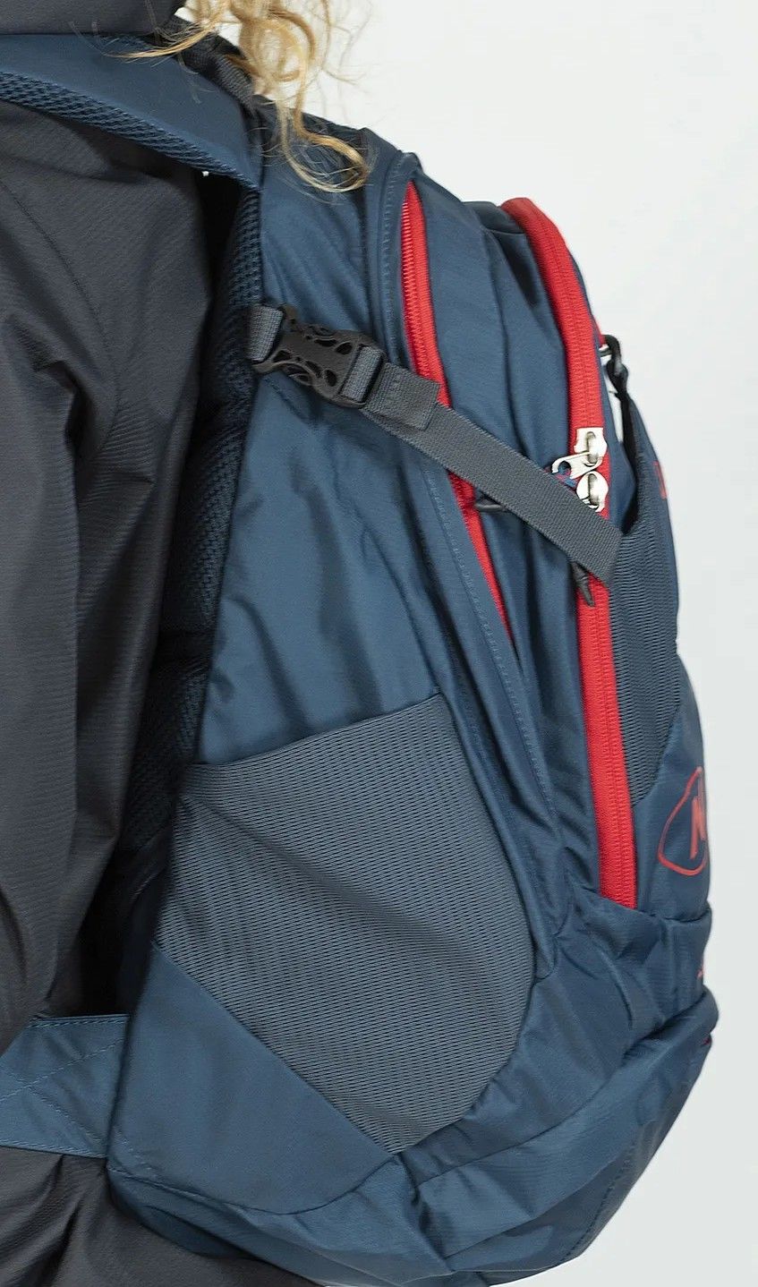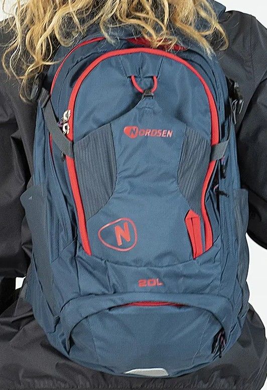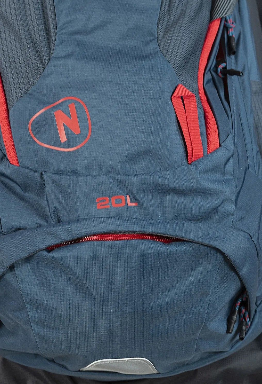 Zaino capacita' di 20 litri. carico dall'alto con ampio e capiente vano con tasca interna. due tasche frontali. tasche laterali in rete. fibbie di compressione laterali. punti d'ancoraggio multifunzionali regolabili. schienale imbottito e rifinito con morbida rete traspirante. spallacci imbottiti e regolabili, cinturino lombare.