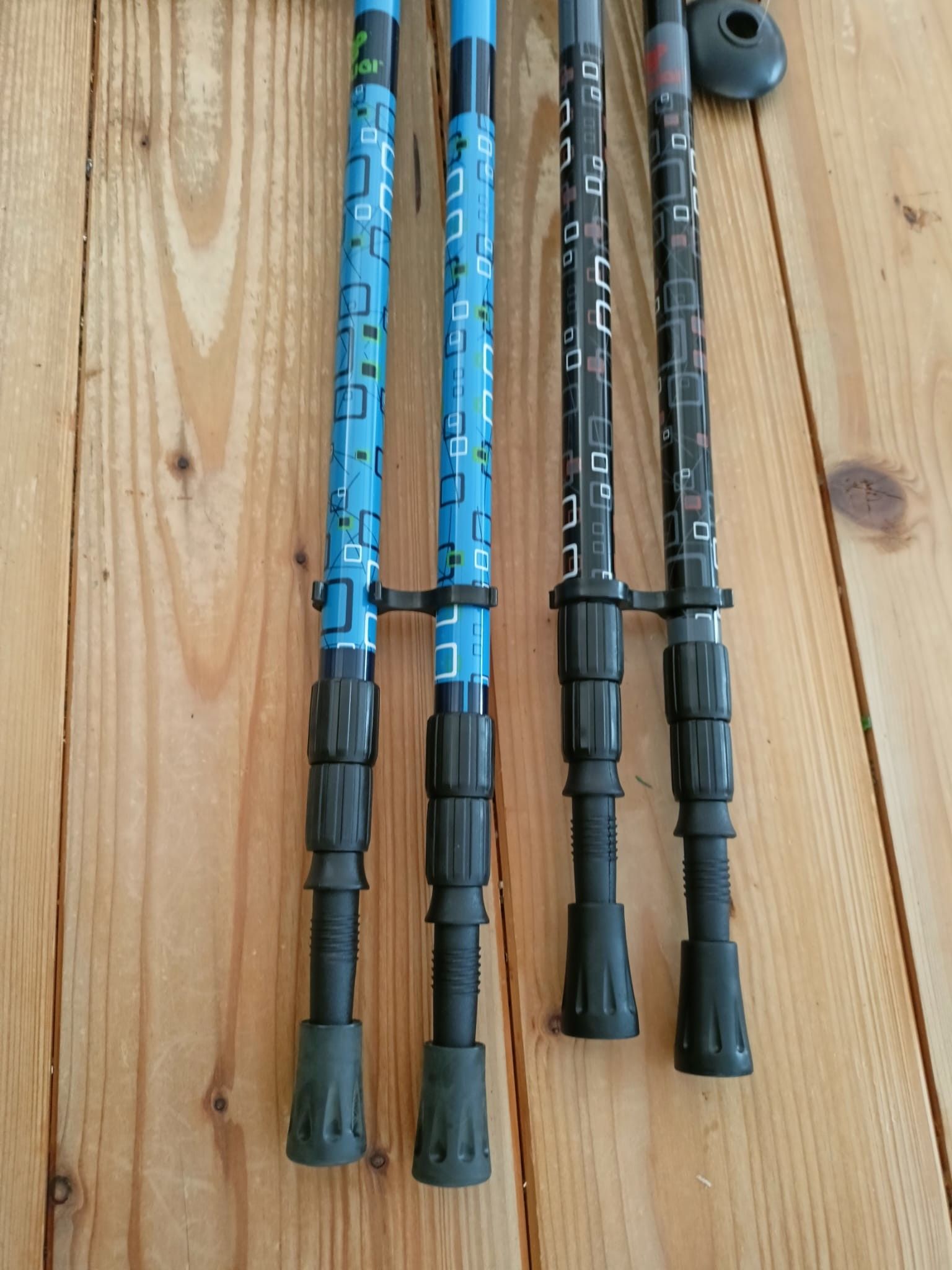 Paio di bastoncini trekking telescopici in alluminio con estensione da 65cm fino a 135cm. ciascuno diviso in tre settori di diametro 18-16-14. impugnatura ergonomica in gomma. passamano regolabile. copripuntale in gomma che assorbe le vibrazioni. punta in acciaio temperato.
